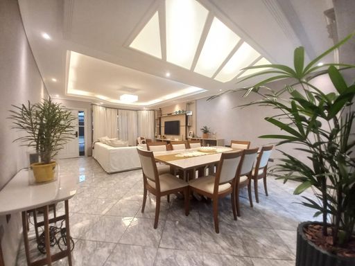 Apresento um sobrado de altíssimo padrão no coração do Embaré, concebido para quem busca uma residência que entregue conforto absoluto, arquitetura refinada e tecnologia de ponta. São 156 m² de elegância integralmente reformados, mobiliados e oferecidos porteira fechada, proporcionando a experiência de entrar e simplesmente viver o melhor. Ambientes sociais O térreo revela uma sala ampla e fluida para três ambientes, revestida com porcelanato Portobello, iluminação em LED projetada para valorizar o design e parede espelhada que amplia e eleva a atmosfera do espaço. O mobiliário, de estética contemporânea, inclui sofá retrátil e reclinável, mesa para seis lugares e uma imponente TV OLED 65", compondo um cenário ideal para convivência sofisticada. A cozinha alia funcionalidade e requinte: bancada em granito, armários espelhados, torre quente, fogão de indução, lava-louças e geladeira Side by Side inox, formando um conjunto de performance elevada e acabamento de excelência. Área Gourmet O espaço gourmet, finamente integrado, apresenta churrasqueira, cervejeira, chopeira, bancada em granito e cobertura retrátil em vidro, compondo um ambiente perfeito para receber com distinção. A área de serviço é equipada com lava e seca Samsung. Piso superior O pavimento íntimo oferece dois dormitórios generosos, climatizados e acolhedores. Um deles se destaca pelo telão de projeção de 100", criando um ambiente digno de cinema privado. O banheiro, revestido em mármore, é amplo e pode ser convertido em duas suítes, conforme a necessidade do morador. Segurança e tecnologia A residência dispõe de automação completa, janelas antirruído e blindadas, três portões automatizados, acesso biométrico, cerca elétrica, alarme integrado ao aplicativo, câmeras Full HD e sistema Wi-Fi Mesh. O pressurizador confere duchas de alto desempenho, comparáveis às melhores suítes de hotel. Garagem e localização São duas vagas cobertas e independentes. A rua é tranquila, arborizada e estrategicamente situada a 1,5 km da praia, próxima de escolas, padarias e serviços essenciais. Informações 156 m² | Terreno 10 × 10 m | IPTU R$ 2.300 | Escritura definitiva Uma residência singular, criada para quem valoriza sofisticação, privacidade e excelência. Agende sua visita.