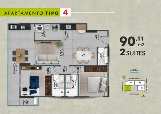 Apartamento em construção no Canto do Forte, em Praia Grande - SP. 🌿 Empreendimento localizado no Canto do Forte, um dos bairros mais valorizados de Praia Grande, com lazer completo no rooftop, ideal para toda a família: espaço festas, espaço teen, brinquedoteca, playground, espaço grill, lounge space, salão de jogos adulto, fitness, deck molhado, piscina adulto, piscina infantil e sauna. O apartamento possui 98,38 m² de área útil, muito bem distribuídos em 04 suítes, lavabo, sala ampla, cozinha, área de serviço, terraço técnico e uma excelente sacada com espaço gourmet, perfeita para receber amigos e familiares. Conta ainda com 02 vagas de garagem. 💰 Condições facilitadas: aceita financiamento bancário e financiamento direto com a construtora. Uma excelente oportunidade para quem busca conforto, sofisticação e flexibilidade de pagamento, em uma localização privilegiada.