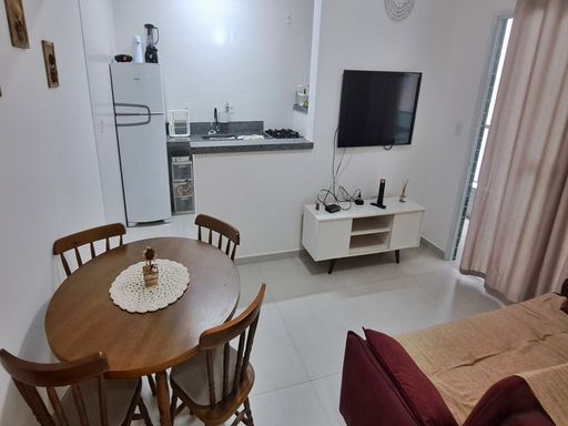 São 44,30m² de área útil, com 1 dormitório, sala de estar com varanda, cozinha americana, banheiro social e 1 vaga de garagem. O imóvel está semi-mobiliado, pronto para você entrar e desfrutar de tudo o que Praia Grande tem de melhor!