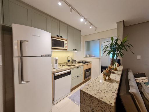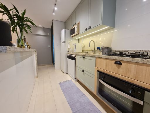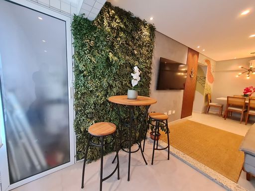 Totalmente mobiliado e decorado, ele é composto por um quarto amplo com suíte, sala de estar e jantar integradas, varanda gourmet com fechamento de vidro, perfeita para momentos especiais, além de uma cozinha americana com planejados, área de serviço, espaço técnico para ar condicionado, lavabo e uma vaga de garagem. Cada ambiente foi pensado para oferecer funcionalidade, charme e uma rotina leve.