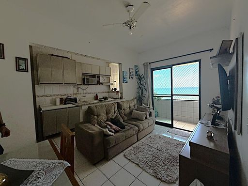 A cozinha conta com móveis planejados, proporcionando praticidade e organização, além de área de serviço reservada e banheiro social. O apartamento é extremamente ventilado, bem iluminado, garantindo ambientes aconchegantes e agradáveis ao longo do dia. Possui ainda 1 vaga de garagem e está localizado em uma região estratégica, pé na areia, próxima a comércios, mercados, farmácias e tudo o que você precisa para morar com conforto e comodidade.