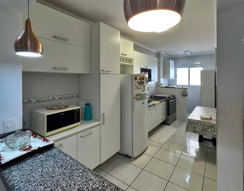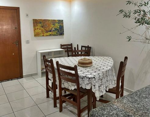 O apartamento conta com 1 dormitório, sendo 1 suíte, além de uma sala ampla para dois ambientes, proporcionando conforto e versatilidade no dia a dia. A sacada envidraçada com churrasqueira é um grande diferencial, perfeita para momentos de lazer, com uma agradável vista lateral que traz ainda mais charme ao ambiente. Os espaços são bem distribuídos, com ótima iluminação e ventilação natural, garantindo um ambiente aconchegante e funcional.
