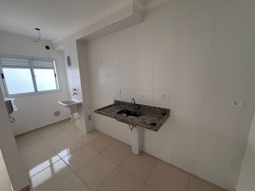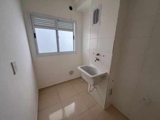 São 57,06 m2 de área útil, 2 quartos, sala de estar, cozinha, área de serviço, varanda, banheiro social e 1 vaga de garagem.