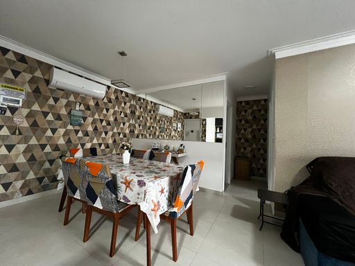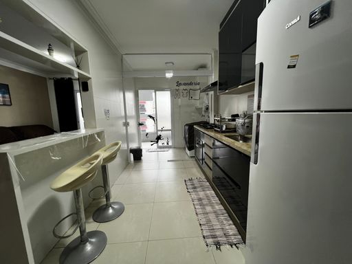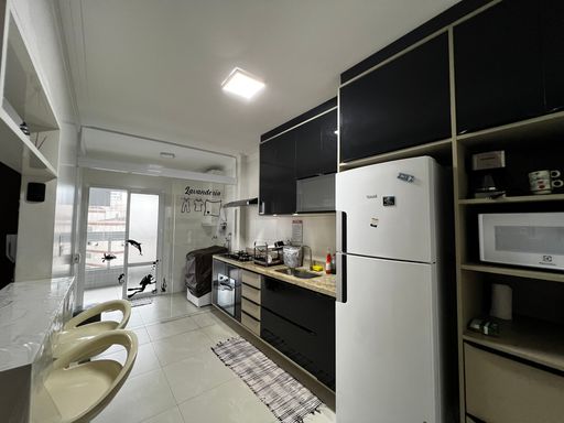 Distribuído em 2 dormitórios, sendo 1 suíte, o apartamento conta com uma sala ampla integrada à sacada gourmet, ideal para reunir a família e amigos em momentos especiais. A cozinha moderna e funcional se conecta à área de serviço independente, otimizando o espaço e garantindo mais organização. O imóvel ainda oferece banheiro social e 2 vagas de garagem, um diferencial importante na região.