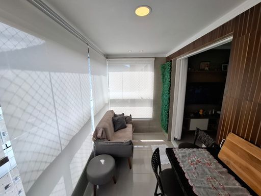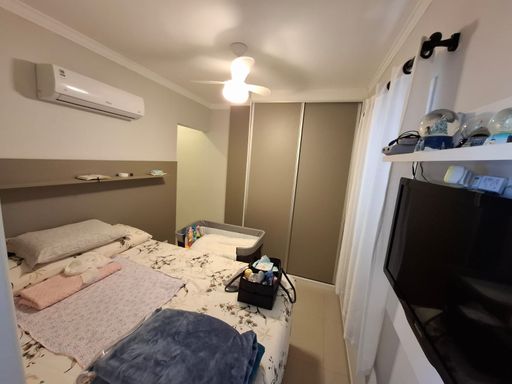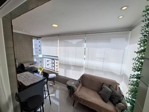 O imóvel conta com ar-condicionado na sala e na suíte, móveis planejados em cerca de 80% dos ambientes com acabamento em estilo provençal, além de um investimento recente em mobília que agrega ainda mais valor ao apartamento. Os ambientes foram pensados para oferecer conforto e sofisticação, com iluminação em tons âmbar que cria uma atmosfera aconchegante, enquanto os banheiros possuem opções de iluminação funcional e decorativa.