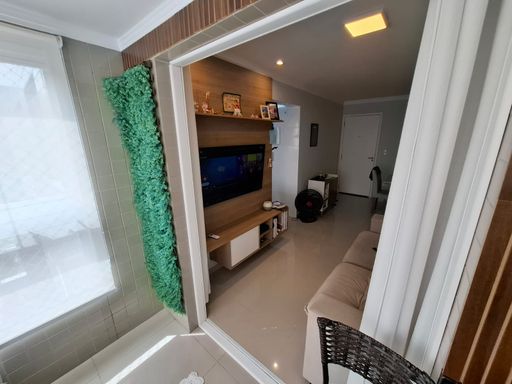 Com 67,14m² muito bem distribuídos, este apartamento no último andar (12º andar) proporciona uma vista privilegiada para o Morro Xixová, trazendo uma sensação única de contato com a natureza. São 2 dormitórios, sendo 1 suíte, além de uma sacada gourmet com churrasqueira a carvão, perfeita para momentos de lazer e confraternização, com fechamento em vidro, persianas e uma decoração acolhedora que valoriza ainda mais o ambiente.