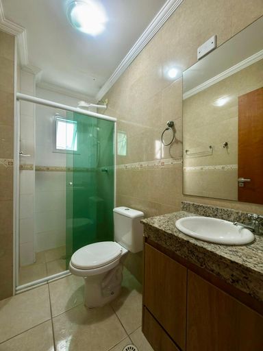 • Banheiro social moderno, com acabamento de qualidade e excelente ventilação.