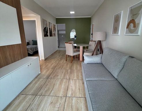 A cozinha conta com móveis planejados, trazendo praticidade e organização ao dia a dia, além de área de serviço funcional e 1 vaga de garagem. O apartamento é perfeito tanto para moradia quanto para investimento imobiliário, com grande potencial de valorização e alta procura para locação na região do Canto do Forte em Praia Grande.