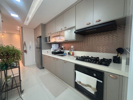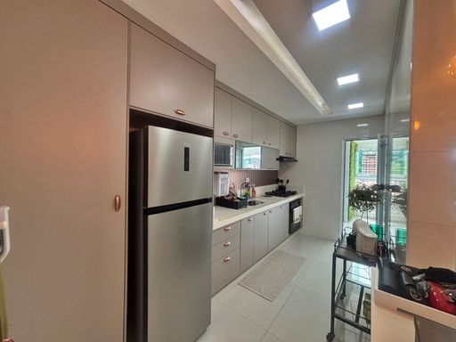 O apartamento conta com 81 m² de área útil: 2 Quartos, ambos suítes, garantindo privacidade e conforto, além de uma sala de estar e jantar integrada, ampla e acolhedora, ideal para receber amigos e família. A varanda gourmet com fechamento em vidro e vista para o Morro proporciona um ambiente elegante e agradável para momentos de lazer, enquanto a cozinha americana traz praticidade ao dia a dia. O imóvel dispõe ainda de lavabo, área de serviço funcional e 2 vagas de garagem, agregando ainda mais comodidade.