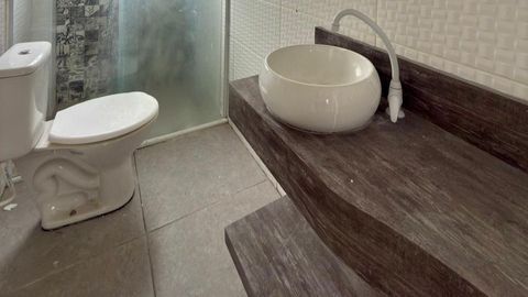• Banheiro social com ótimo acabamento, ventilação natural e fácil manutenção.