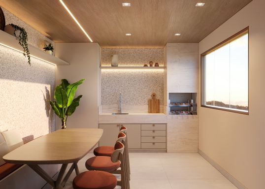 São 61,89m² de área útil muito bem distribuidos em sala de estar, cozinha, área de serviço, lavabo, 2 quartos, sendo 2 suítes e 1 vaga de garagem. O prédio terá excelente infraestrutura de lazer e segurança.