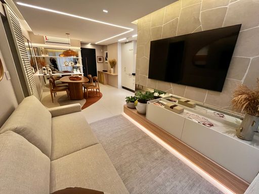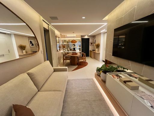 Apartamento de alto padrão à venda em Praia Grande, finamente decorado por arquiteta renomada, com projeto exclusivo e acabamento de primeira linha, ideal para quem busca sofisticação, conforto e valorização imobiliária. Com aproximadamente 90m² de área útil, este imóvel oferece uma planta moderna e funcional, com sala de estar ampla, integrada à cozinha arejada, área de serviço, terraço técnico para ar-condicionado e uma elegante varanda gourmet com fechamento de vidro, voltada para a rua, perfeita para receber amigos e desfrutar de momentos especiais.