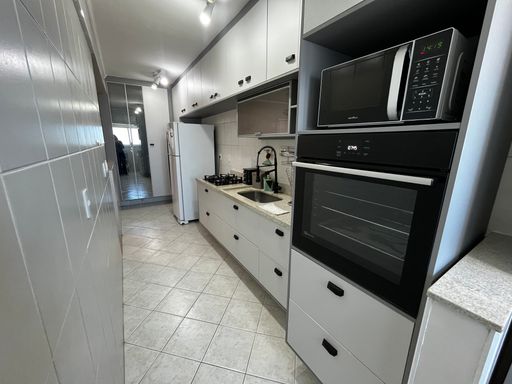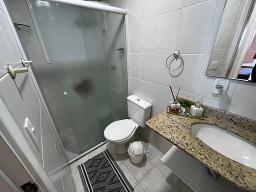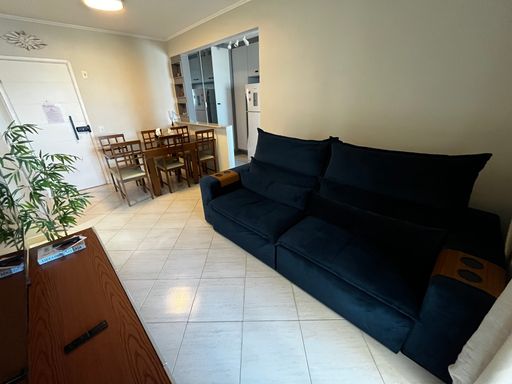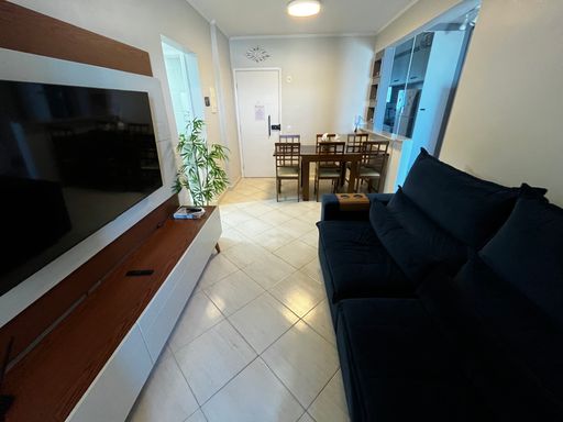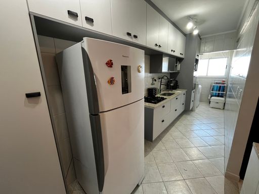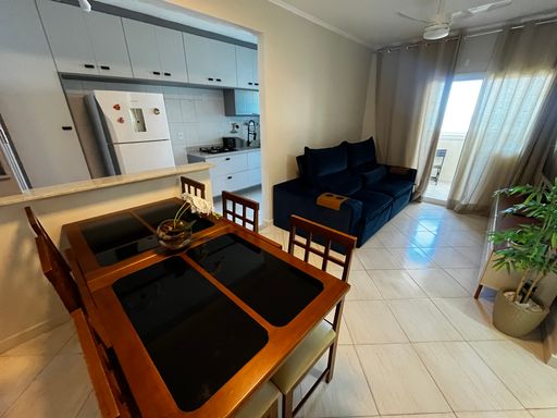 Com 70 m² de área útil, o imóvel possui 2 dormitórios, sendo 1 suíte, sala aconchegante com acesso à sacada, que conta com churrasqueira e uma agradável vista para o mar — perfeita para curtir bons momentos. Dispõe ainda de cozinha funcional, área de serviço, banheiro social e 1 vaga de garagem.