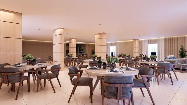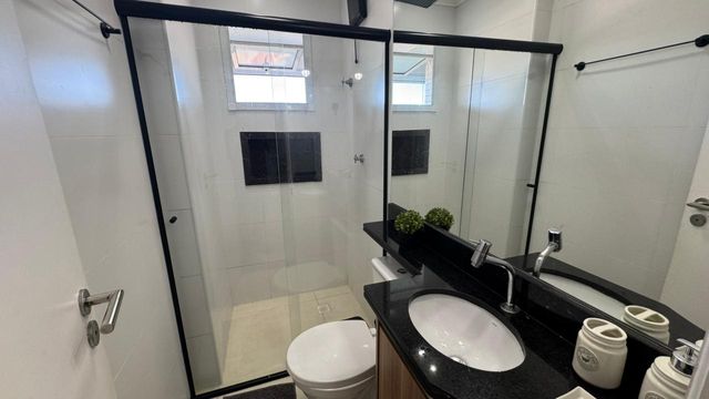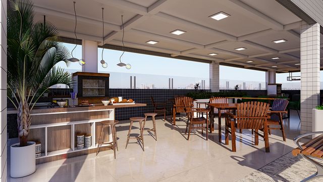O apartamento está totalmente mobiliado, pronto para morar, com cozinha americana planejada, funcional e moderna, integrada à área social. Possui ainda banheiro social e área de serviço bem distribuída. As duas vagas de garagem garantem comodidade e segurança no dia a dia.