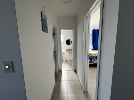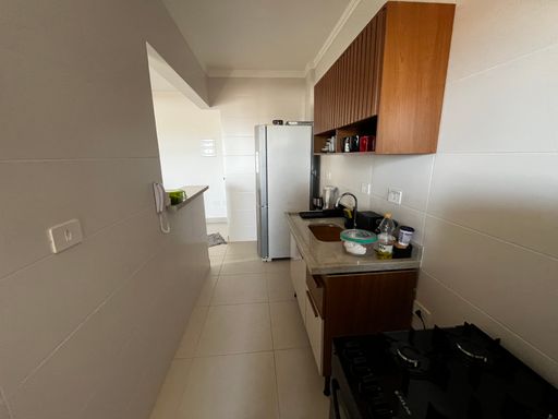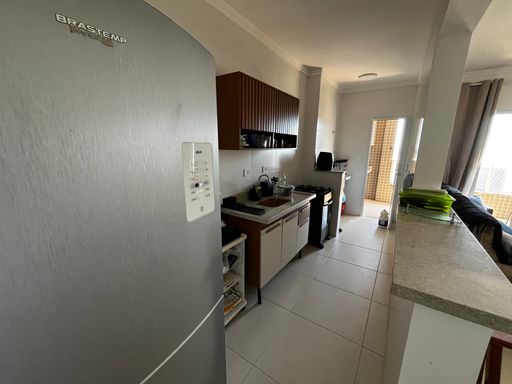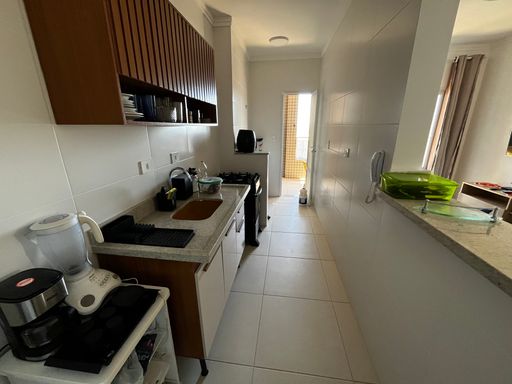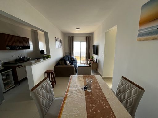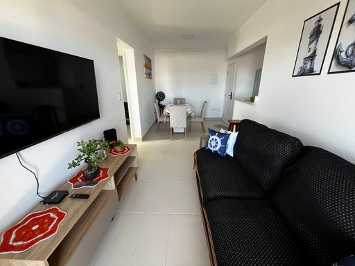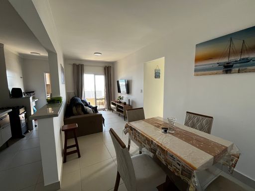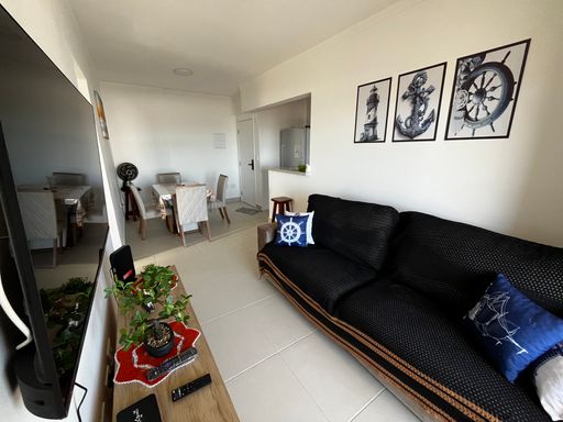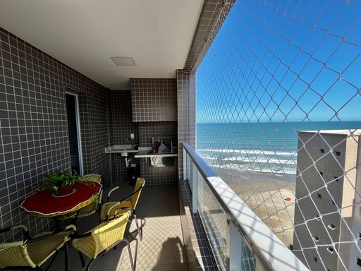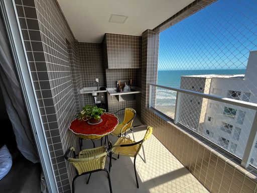 O imóvel conta com 70 m² de área útil, distribuídos em 2 quartos, sendo 1 suíte, sala ampla com acesso à sacada gourmet com churrasqueira e uma agradável vista mar, ideal para momentos de lazer e descanso. Possui ainda cozinha bem distribuída, área de serviço, banheiro social e 2 vagas de garagem demarcadas.