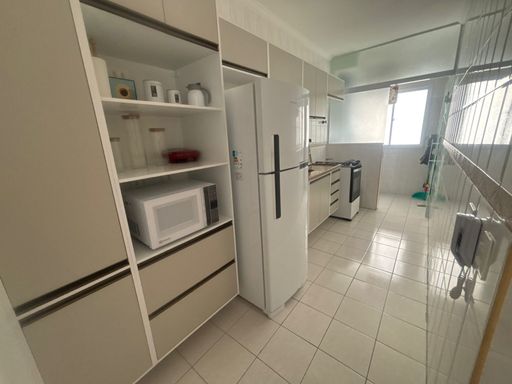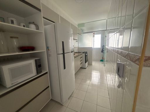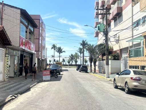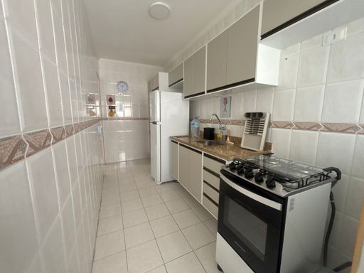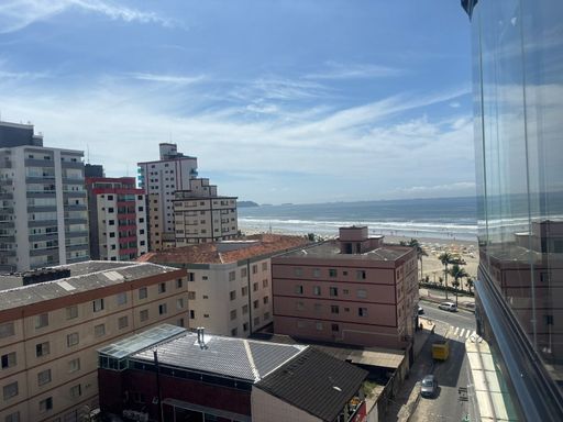 Apartamento pertinho da praia no bairro Ocian em Praia Grande, contendo aproximadamente 60m² de área útil, composto por 2 quartos, sendo 1 suíte, sala de estar e jantar, varanda com fechamento de vidro, vista lateral para o mar e frente para a rua, cozinha com armários planejados, área de serviço ventilada, banheiro social e 1 vaga de garagem.
