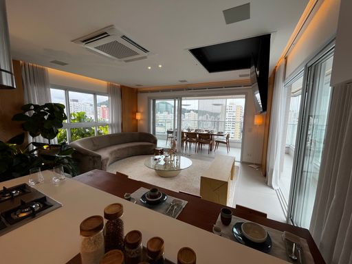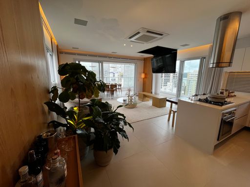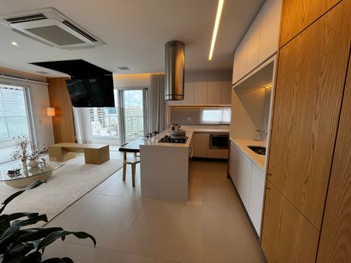 • Sala espaçosa integrada à cozinha, proporcionando um ambiente moderno e funcional