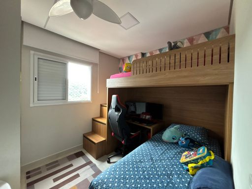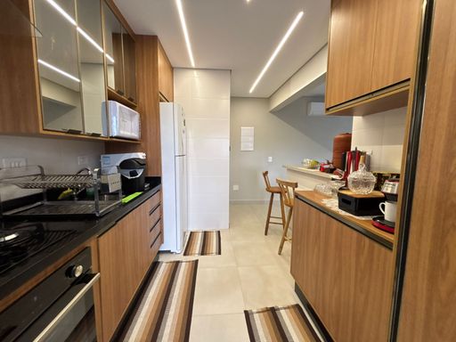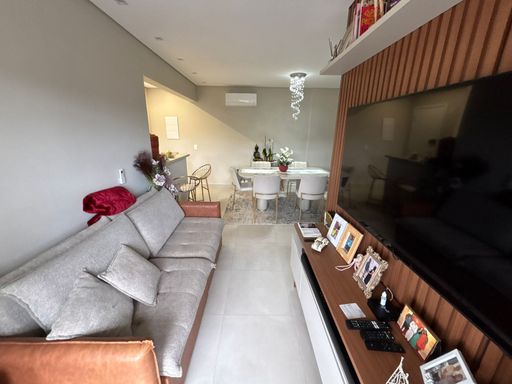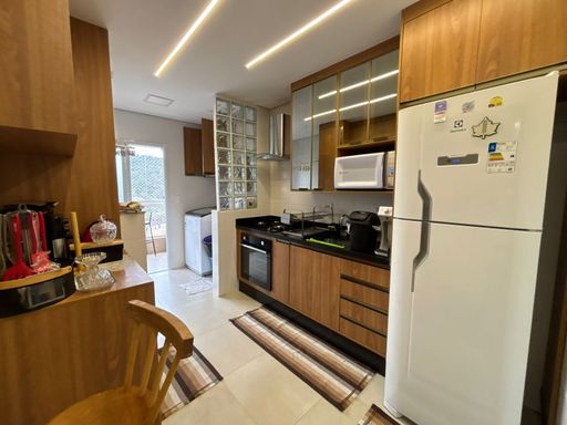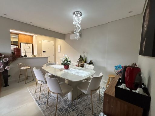 Este imóvel conta com 3 dormitórios, sendo 1 suíte, todos com móveis planejados de alto padrão, garantindo praticidade e sofisticação em cada detalhe. A sala de estar e jantar é ampla e bem iluminada, integrada à varanda gourmet com fechamento em vidro e vista livre, perfeita para receber amigos e desfrutar momentos especiais com conforto e privacidade. A cozinha americana planejada proporciona um ambiente funcional e moderno, enquanto a área de serviço e o banheiro social complementam o espaço com total aproveitamento.