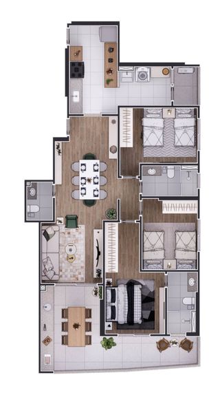 Apartamentos de 3 dormitórios, sendo 1 suíte, demais dependências e 2 vagas de garagem. Contendo 111m² de área útil, em ótima localização e com área de lazer completa, equipada e decorada.