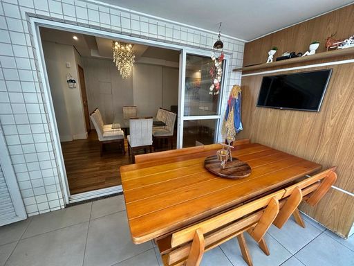 O apartamento possui 03 dormitórios, todos suítes, oferecendo praticidade e privacidade para toda a família. A sala é bem distribuída, ideal para criar ambientes de estar e jantar, integrada à sacada com churrasqueira e vista mar lateral, perfeita para momentos de lazer e confraternização.