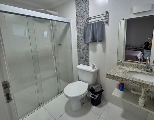 São três suítes amplas, além de um lavabo, garantindo privacidade e comodidade para toda a família. A sala de estar integrada à sala de jantar cria um ambiente elegante e acolhedor, com excelente iluminação natural e acesso à sacada envidraçada, perfeita para momentos de lazer e contemplação.
