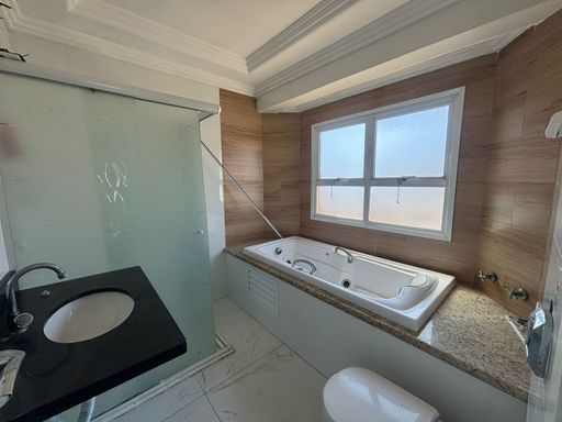 A cobertura conta com sala para dois ambientes, trazendo amplitude e iluminação natural, perfeita para receber amigos e familiares. São 3 suítes espaçosas, além de um lavabo, garantindo praticidade no dia a dia. A cozinha ampla oferece funcionalidade e excelente espaço para quem gosta de cozinhar, e a dependência de empregada amplia ainda mais as possibilidades de uso.