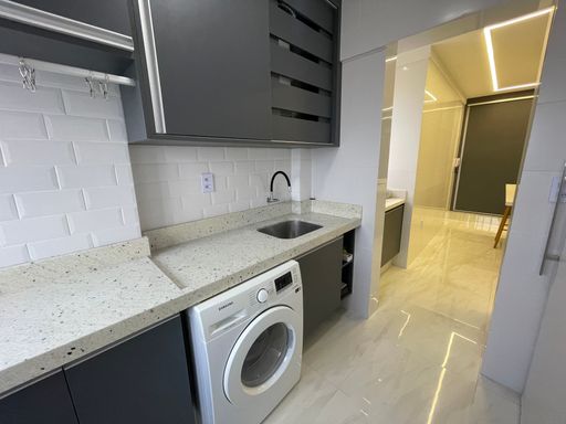 • Lavanderia com despensa: ambiente organizado, ideal para o dia a dia.