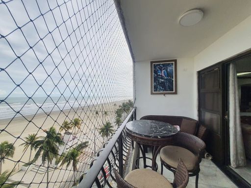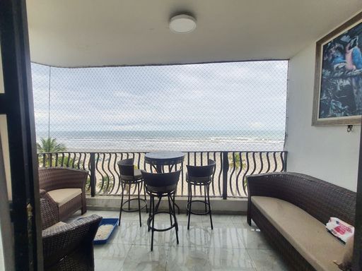 A sala é imensa, ideal para até 3 ambientes, totalmente integrada à varanda com vista mar frontal definitiva, perfeita para receber convidados e desfrutar momentos únicos com o som e a brisa do mar.