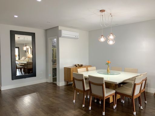• Sala ampla para dois ambientes, com integração perfeita entre estar e jantar, ideal para momentos de convivência e recepção.