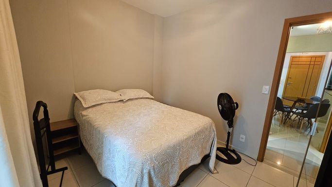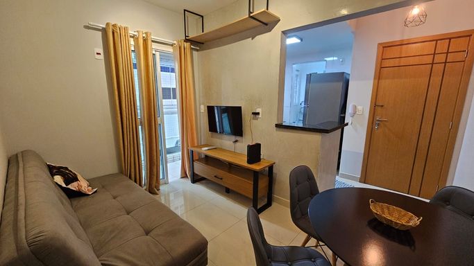 • 1 Dormitório: Ambiente confortável e bem iluminado, ideal para casais ou solteiros que priorizam praticidade.