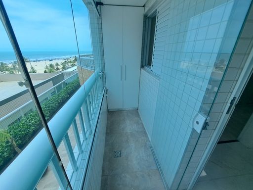Destaque para a varanda gourmet com fechamento em vidro e vista lateral para o mar, perfeita para relaxar, reunir a família e aproveitar o melhor do clima litorâneo.