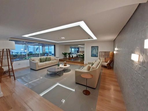 O apartamento é simplesmente impecável — composto por 3 dormitórios, todos suítes, sala ampla para dois ambientes, cozinha americana com planejados sob medida, dependência de empregada com banheiro, área técnica para ar-condicionado e um elevador semi-privativo, garantindo mais privacidade e conforto no acesso.
