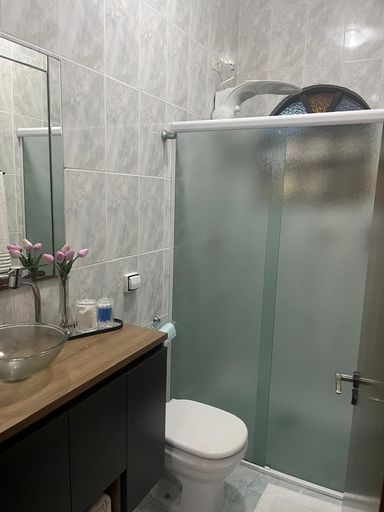 Banheiros com Acabamentos de Qualidade: Revestimentos modernos, nichos embutidos e design sofisticado que unem praticidade e beleza.
