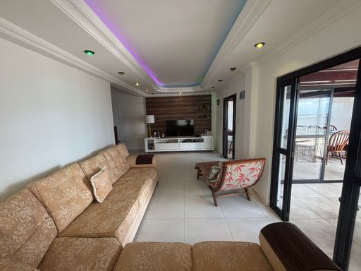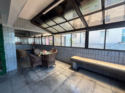 A cobertura dispõe de duas vagas de garagem não demarcadas, sendo uma no térreo e outra no subsolo, além de direito a uma vaga para visitante, conforme disponibilidade. O prédio ainda oferece armário privativo no térreo para cadeiras de praia e guarda-sol, um diferencial que faz toda a diferença para quem vive de frente para o mar. Nas áreas comuns, o condomínio conta com salão de jogos, piscina com cascata e sala para reuniões, complementando o conforto e o lazer.