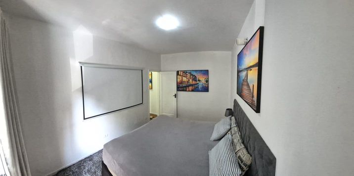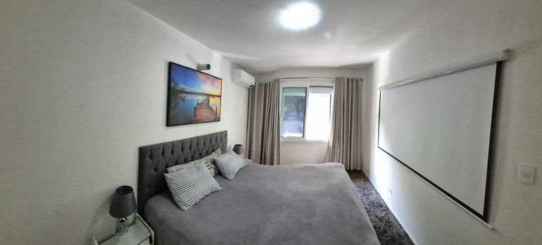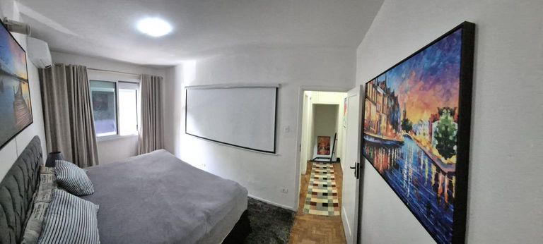 O pavimento íntimo oferece dois dormitórios generosos, climatizados e acolhedores. Um deles se destaca pelo telão de projeção de 100", criando um ambiente digno de cinema privado. O banheiro, revestido em mármore, é amplo e pode ser convertido em duas suítes, conforme a necessidade do morador.